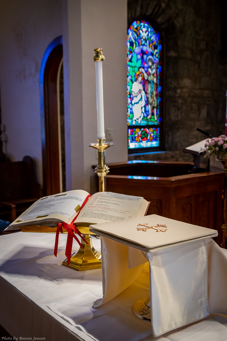 A look inside the worship space—altar, windows, and the places where our community gathers in prayer.